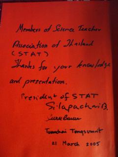 | 3月21日,我校接待了来自于泰国的科技教育协会代表团,一行30余人。代表团的成员有大学教授,中学和小学的科技教师和校长。潘为琳校长向代表团介绍了学校的发展历程和学校的科技特色---康宁少儿科学院和达尔文生物观察站。在参观完校园后,代表团们观摩了一堂生动有趣的一年级的自然课,在课中,代表团们对于学生的实验非常感兴趣,课后还与授课教师进行了交流。上午十点,校长与代表们进行了热烈的交流,代表团的成员们对于学校的科技成果非常感兴趣,迫切了解更多关于学校如何开展科技教育活动的信息;同时,他们对于教师的在职培训也非常感兴趣,提出了许多关于在职教师如何提高自己专业能力和学历进修的专业问题。整个座谈会期间,交流气氛十分融洽。在访问期间,学校的校园人文环境和科技教育的氛围都给代表团们留下了深刻的印象。 |