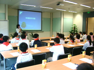 2006年5月9日,康宁科技实验小学部分科技爱好者来到了上海市大金空调展示中心参加由大金公司组织的环保教育活动。同学们在讲解老师的带领下,了解了空调的发展和空调中重要的制冷剂的变化和发展,目前最先进的技术是利用冷酶制冷,告别了制冷剂氟利昂对臭氧层破坏的问题,更加环保。大金公司还给同学们带来了精彩的环保报告,老师用生动的实例向同学们宣传环保的重要,互动游戏更是将活动推向了高潮。