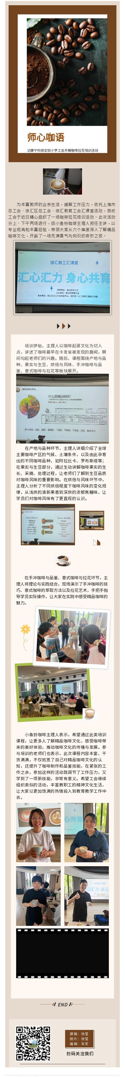 师心咖语--记康宁科技实验小学工会开展咖啡拉花培训活动