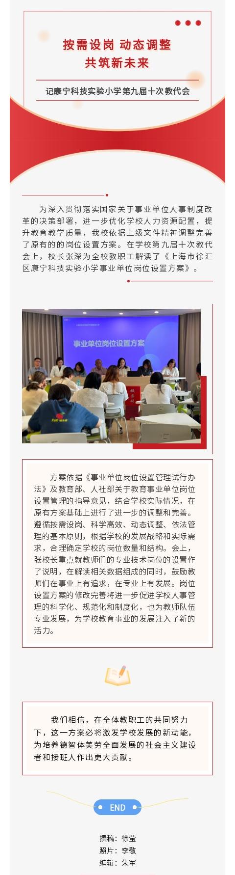 按需设岗 动态调整 共筑新未来--记康宁科技实验小学第九届十次教代会