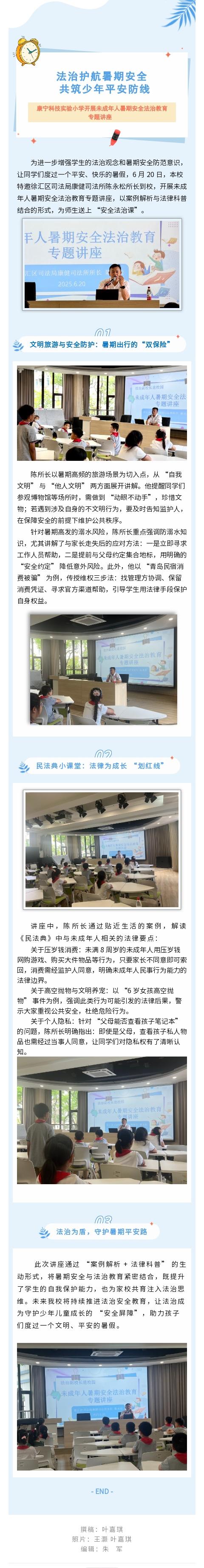 法治护航暑期安全 共筑少年平安防线-- 康宁科技实验小学开展未成年人暑期安全法治教育专题讲座