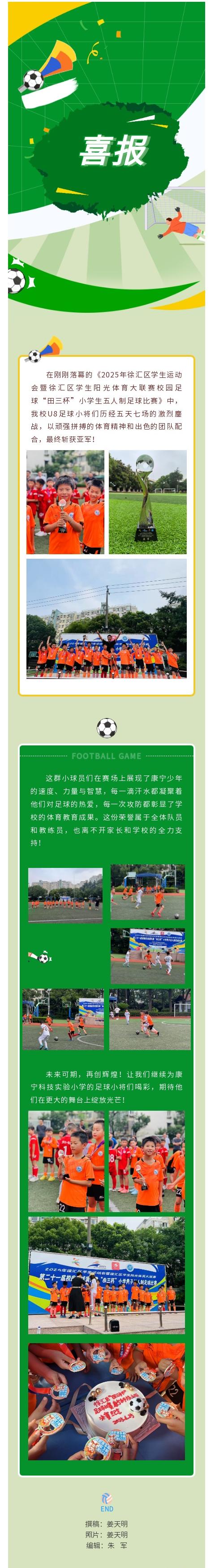 喜报:热烈祝贺康宁科技实验小学U8足球校队勇夺局级杯赛亚军!